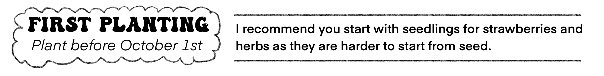 There are many other options for planting, and you can always start with less or more. I hope this is not overwhelming but instead helpful. I tried to combine long term plants like the garlic, with faster growing ones like lettuce and cucumbers, so you get a sense of what kinds are best for your gardening habits and time.